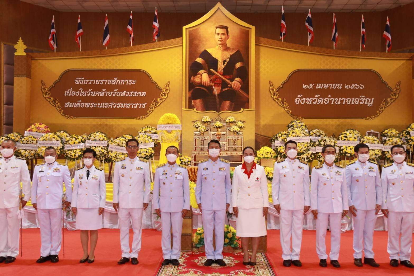 25 เมษายน 2566 เวลา 08.00 น. นางสาววันเพ็ญ ตั้งสกุล นายก อบจ.อำนาจเจริญ พร้อมหัวหน้าส่วนราชการ และข้าราชการในสังกัด เข้าร่วมพิธีวางพวงมาลาถวายราชสักการะเนื่องในวันคล้ายวันสวรรคตสมเด็จพระนเรศวรมหาราช ณ หอประชุมพญานาครินทร์ ศาลากลางจังหวัดอำนาจเจริญ