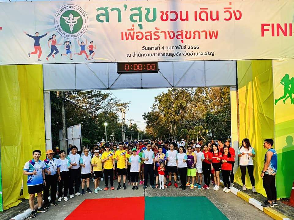 4 กุมภาพันธ์ 2566 เวลา 06.30 น. นางสาววันเพ็ญ ตั้งสกุล นายก อบจ.อจ. ร่วมกิจกรรม "สา'สุข ชวน เดิน วิ่ง" เพื่อสร้างสุขภาพ ณ สำนักงานสาธารณสุขจังหวัดอำนาจเจริญ ระยะทางเดิน วิ่ง รวม 5กิโลเมตร โดยกิจกรรมในครั้งนีัมีประชาชนและบุคลากรทางการแพทย์เข้าร่วมกิจกรรมจำนวนมาก