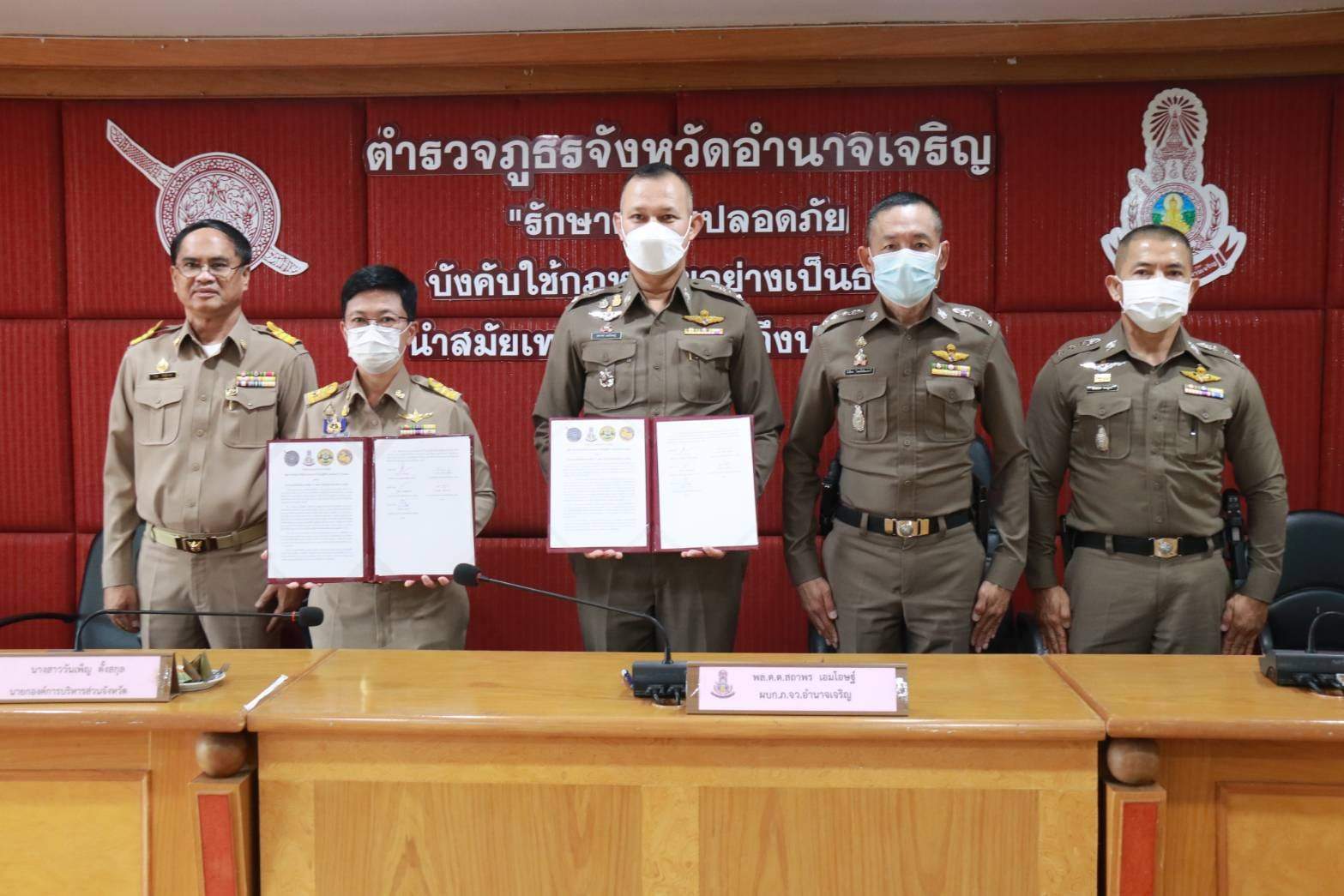 13 กุมภาพันธ์ 2566 เวลา 10.30 น. นางสาววันเพ็ญ ตั้งสกุล นายกองค์การบริหารส่วนจังหวัดอำนาจเจริญ พร้อมด้วย นายพนัส พันธุ์วรรณ รองนายก อบจ.อำนาจเจริญ ร่วมลงนามจัดทำบันทึกตามกรอบแนวทางความร่วมมือการมีส่วนร่วม ระหว่าง องค์การบริหารส่วนจังหวัดอำนาจเจริญ กับ ตำรวจภูธรจังหวัดอำนาจเจริญ