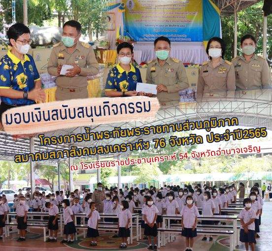 24 สิงหาคม 2565 เวลา 09.00 น. นางสาววันเพ็ญ ตั้งสกุล นายกองค์การบริหารส่วนจังหวัดอำนาจเจริญ มอบเงินสนับสนุนกิจกรรมในโครงการน้ำพระทัยพระราชทานส่วนภูมิภาค สมาคมสภาสังคมสงเคราะห์ฯ 76 จังหวัด ประจำปี 2565 ณ โรงเรียนราชประชานุเคราะห์ 54 จังหวัดอำนาจเจริญ โดยมีผู้บริหารโรงเรียนเป็นผู้รับมอบ
