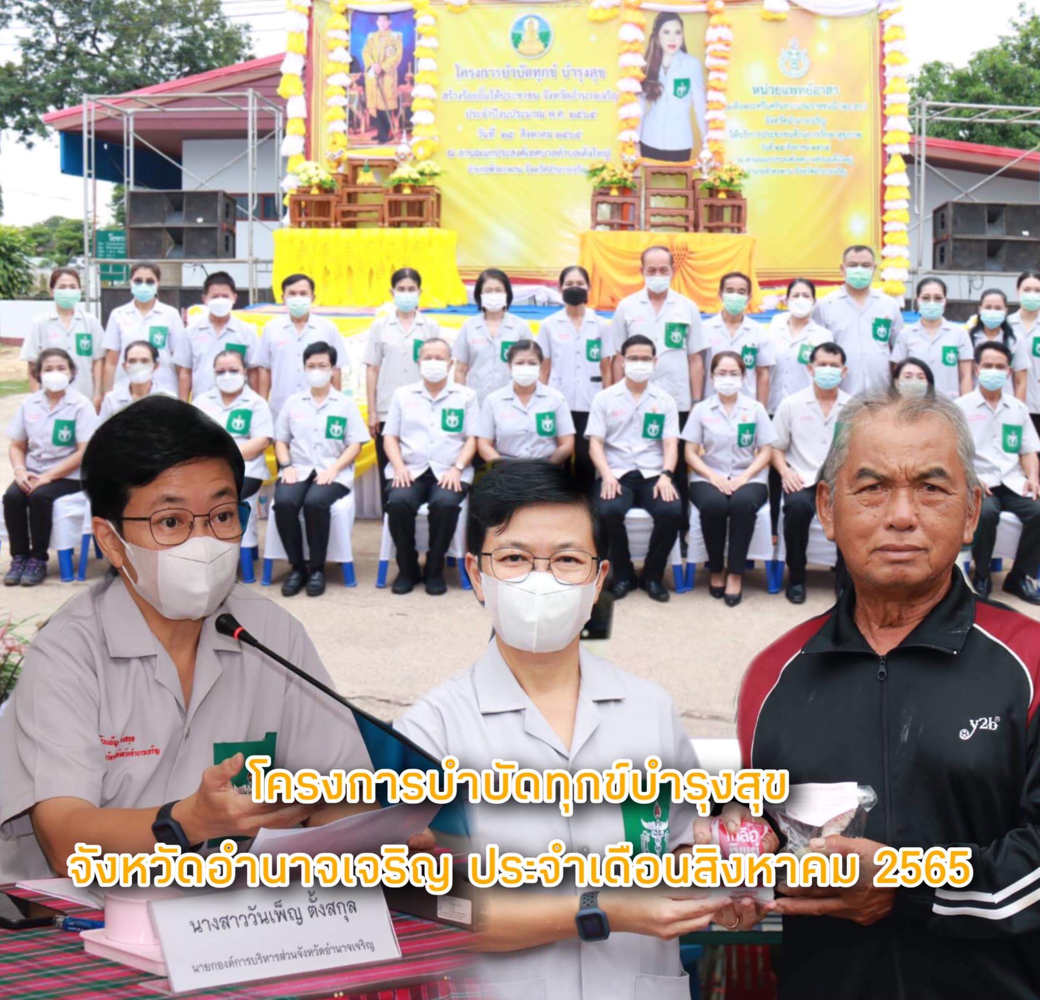 25 สิงหาคม 2565 เวลา 09.00 น. นางสาววันเพ็ญ ตั้งสกุล นายกองค์การบริหารส่วนจังหวัดอำนาจเจริญ พร้อมด้วยข้าราชการองค์การบริหารส่วนจังหวัดอำนาจเจริญ ร่วมโครงการบำบัดทุกข์ บำรุงสุข ประจำเดือน เดือนสิงหาคม 2565 ณ ลานอเนกประสงค์ ทต.เค็งใหญ่ อำเภอหัวตะพาน จังหวัดอำนาจเจริญ โดยมีนายทวีป บุตรโพธิ์ ผู้ว่าราชการจังหวัดอำนาจเจริญ เป็นประธานในพิธี