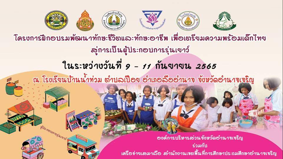 องค์การบริหารส่วนจังหวัดอำนาจเจริญ จัดโครงการฝึกอบรมพัฒนาทักษะชีวิตและทักษะอาชีพ เพื่อเตรียมความพร้อมเด็กไทย สู่การเป็นผู้ประกอบการรุ่นเยาว์ ในโครงการ มีการบรรยายฝึกปฏิบัติ เทคนิกส์การขายของออน์ไลน์ ผ่านแพลตฟร์มต่างๆ การสื่อ Social Media เพื่อการประชาสัมพันธ์ เทคนิกส์การตอบและสร้างแรงกระตุ้นในการซื้อขายสินค้าผ่านเครือข่ายอินเตอร์เน็ต โดยวิทยากรจากสำนักงานพัฒนาฝีมือแรงงานอำนาจเจริญ ระหว่างวันที่ 9-11 กันยายน 2565 ณ โรงเรียนบ้านน้ำท่วม ต.เปือย อ.ลืออำนาจ จ.อำนาจเจริญ