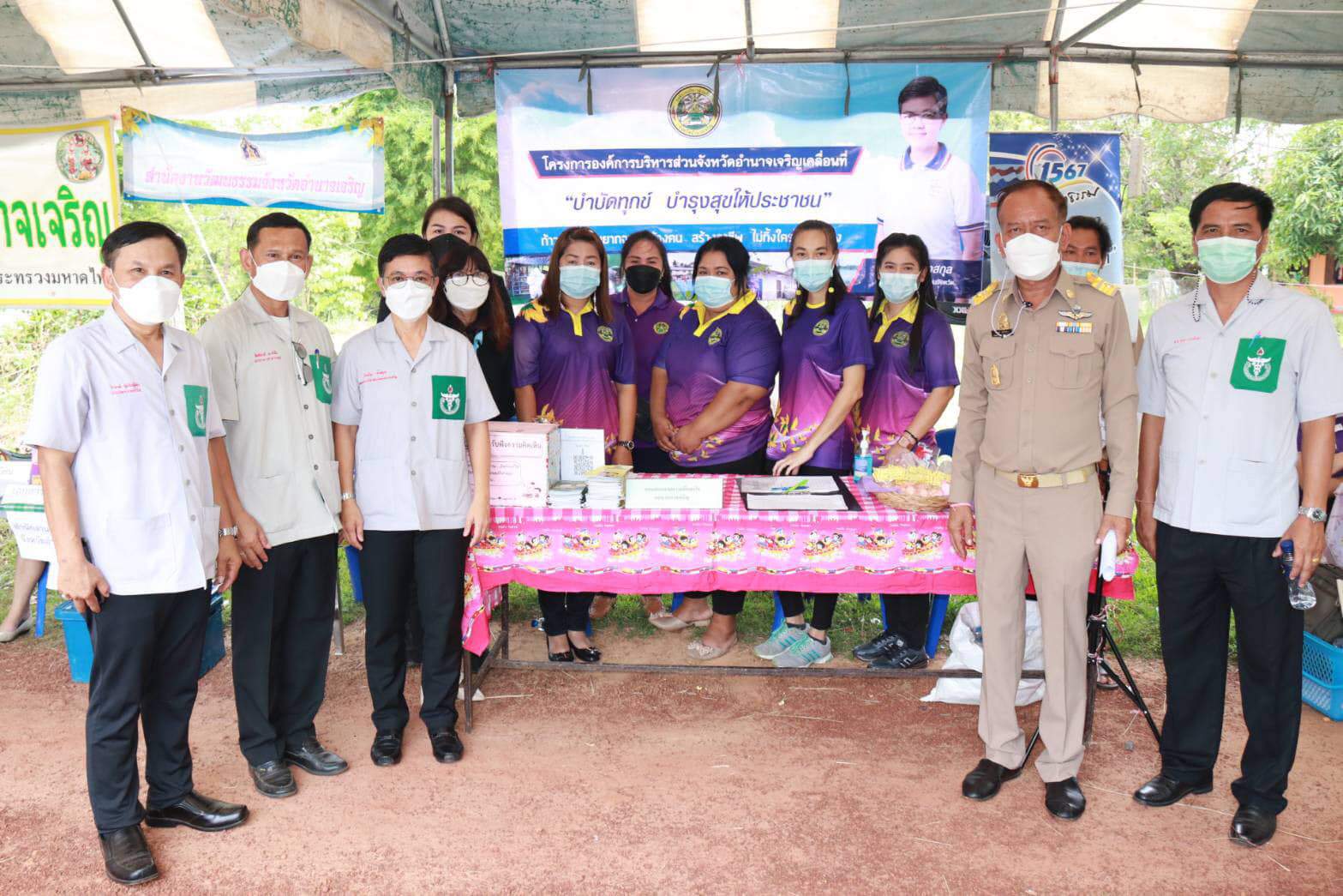 นางสาววันเพ็ญ ตั้งสกุล นายกองค์การบริหารส่วนจังหวัดอำนาจเจริญ ร่วมออกหน่วยจังหวัดเคลื่อนที่ ตามโครงการบำบัดทุกข์ บำรุงสุขสร้างรอยยิ้ม ให้ประชาชน จังหวัดอำนาจเจริญประจำปีงบประมาณ พ.ศ. 2564