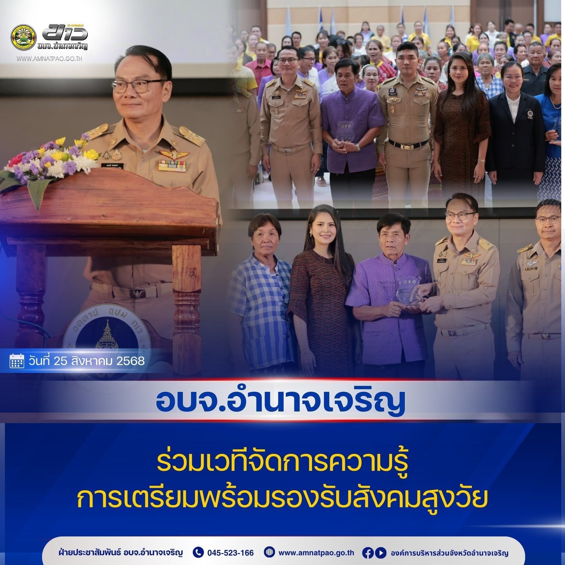 วันที่ (25 สิงหาคม 2568) อบจ.อำนาจเจริญ ร่วมกิจกรรม “ เวทีจัดการความรู้การเตรียมพร้อมรองรับสังคมสูงวัยฯ