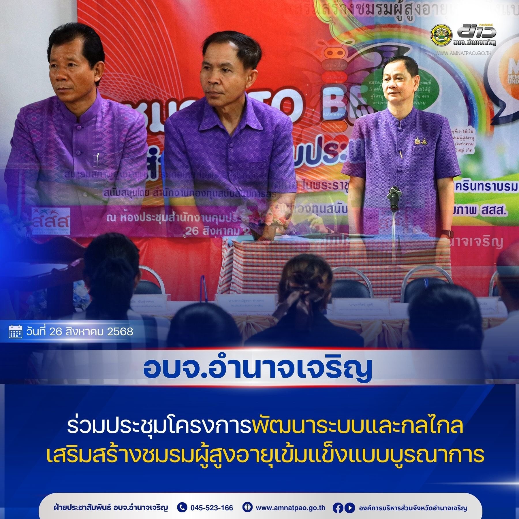 วันที่ 26 สิงหาคม 2568 เวลา 13.30 อบจ.อำนาจเจริญ ร่วมประชุมโครงการพัฒนาระบบและกลไกเสริมสร้างชมรมผู้สูงอายุเข้มแข็งแบบบูรณาการ