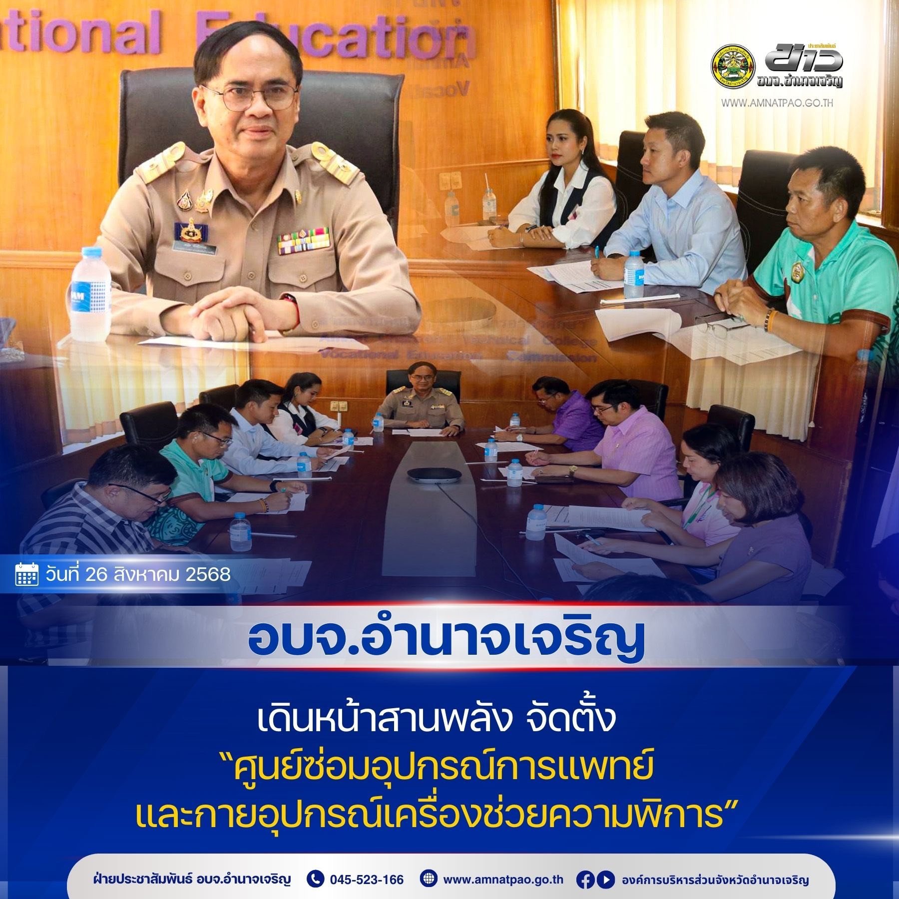 วันที่ 26 สิงหาคม 2568 เวลา 13.30 น. อบจ.อำนาจเจริญ เดินหน้าสานพลัง จัดตั้ง “ศูนย์ซ่อมอุปกรณ์การแพทย์และกายอุปกรณ์เครื่องช่วยความพิการ”