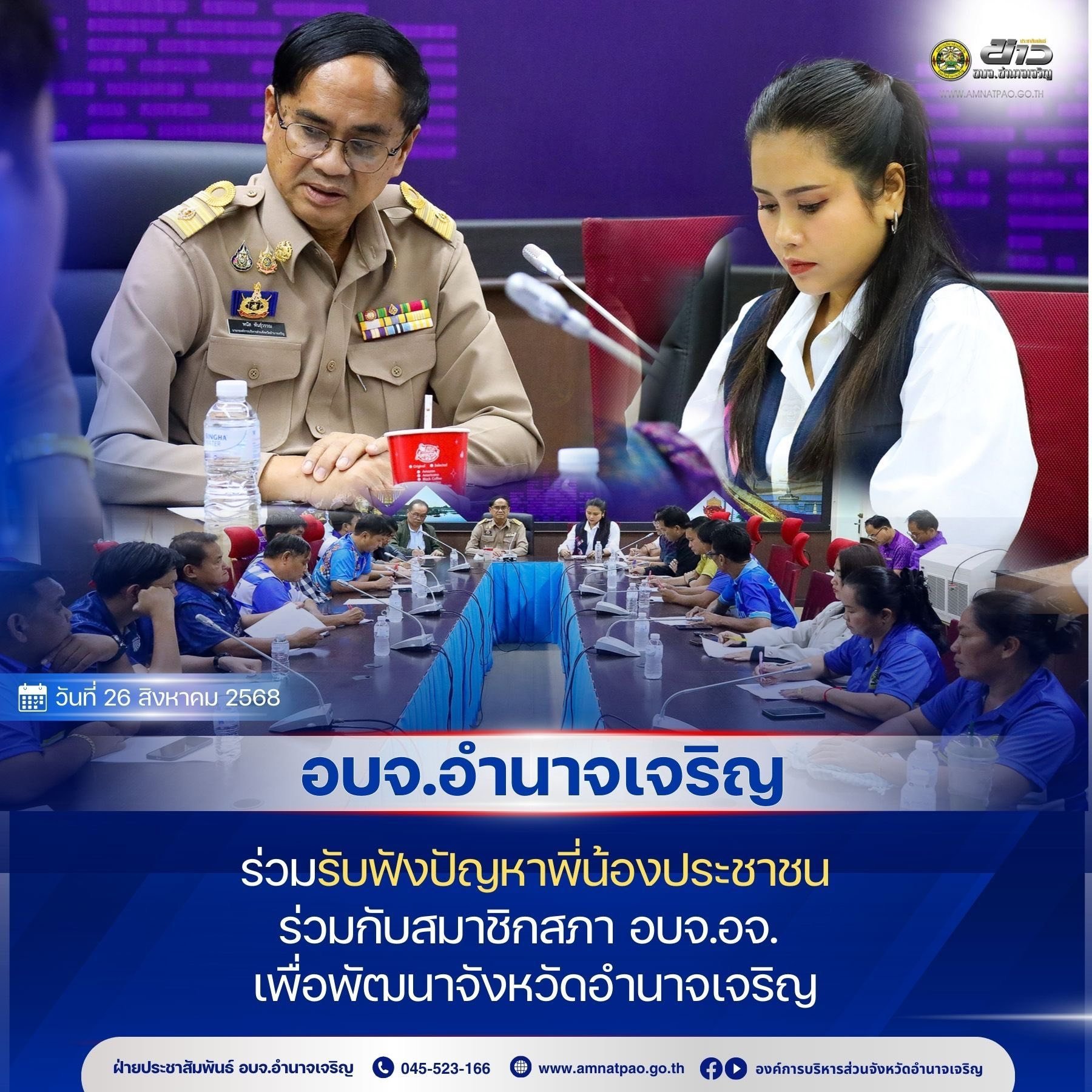 วันที่ 26 สิงหาคม 68 เวลา 15.30 น. อบจ.อำนาจเจริญ​ ร่วมรับฟังปัญหาพี่น้องประชาชน​ ร่วมกับสมาชิกสภา​ อบจ.อำนาเจริญ เพื่อพัฒนาจังหวัดอำนาจเจริญ