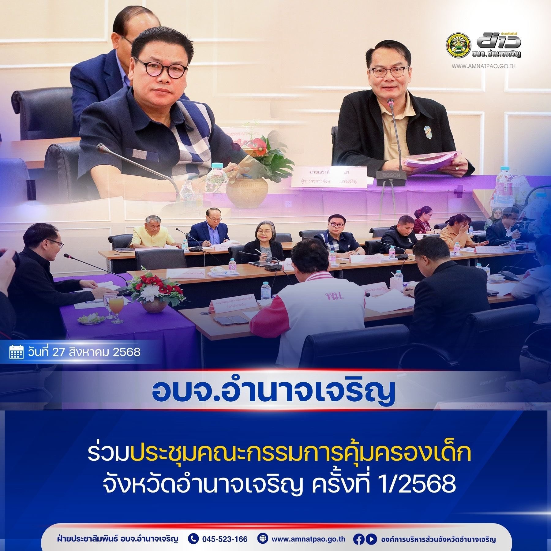 วันที่ 27 สิงหาคม 2568 เวลา 10.00 น. อบจ.อำนาจเจริญ ร่วมประชุมคณะกรรมการคุ้มครองเด็กจังหวัดอำนาจเจริญ ครั้งที่ 1/2568