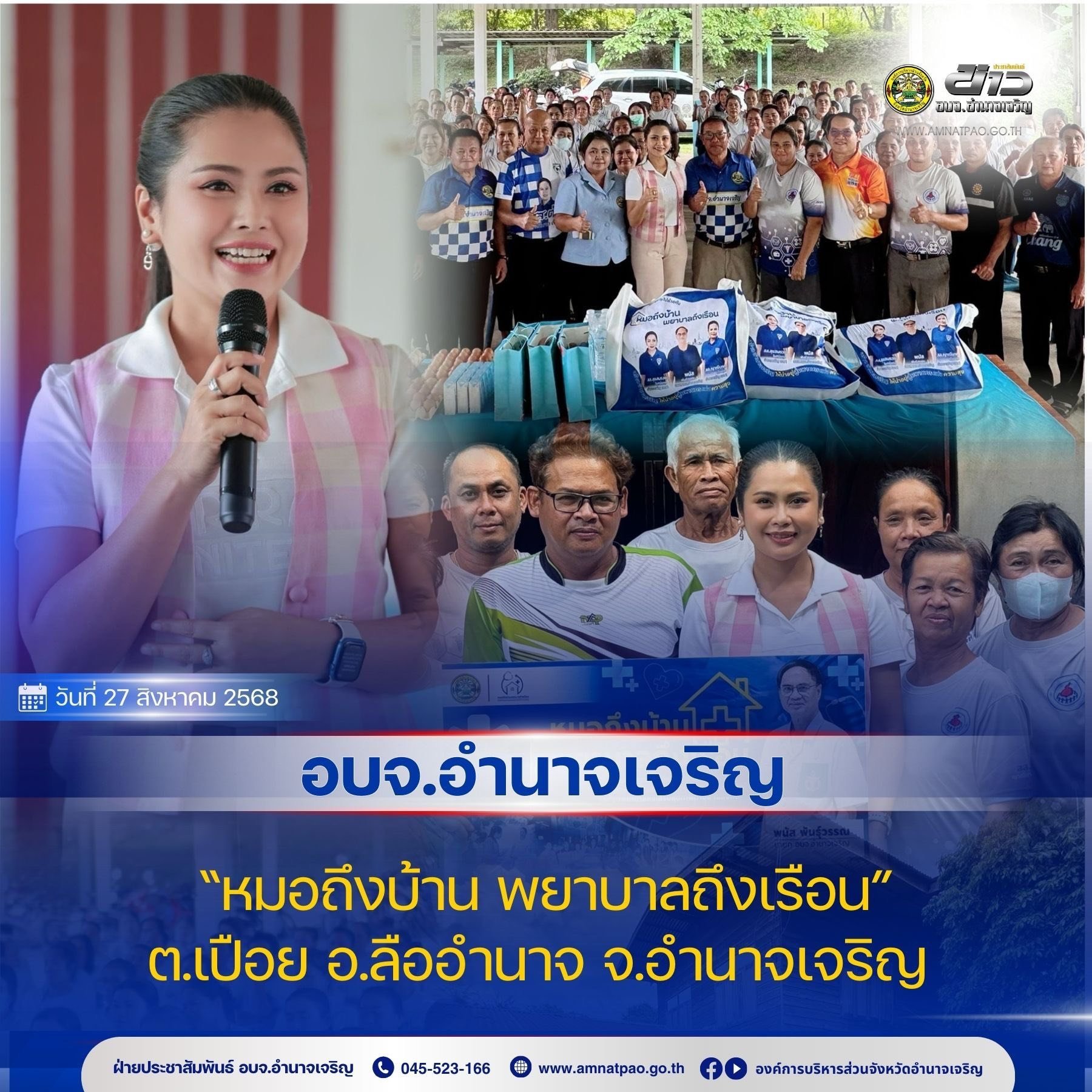 วันที่ 27 สิงหาคม 2568 เวลา 13.00 น. อบจ.อำนาจเจริญ ลุยนโยบาย “หมอถึงบ้าน พยาบาลถึงเรือน” ตำบลเปือย