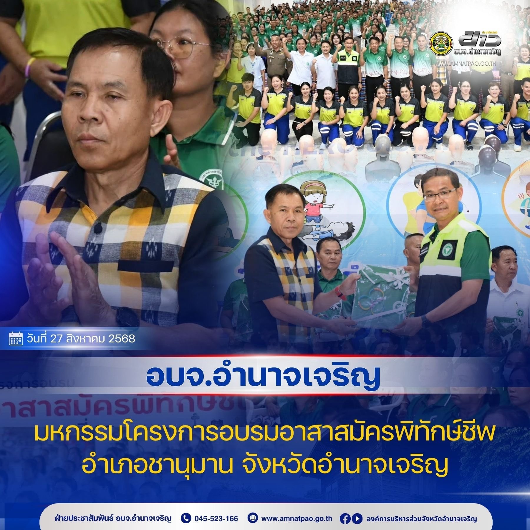 วันที่(27 สิงหาคม 2568) เวลา 09:30 น. อบจ.จ.อำนาจเจริญ ร่วมงานมหกรรมโครงการอบรมอาสาสมัครพิทักษ์ชีพ อำเภอชานุมาน จังหวัดอำนาจเจริญ