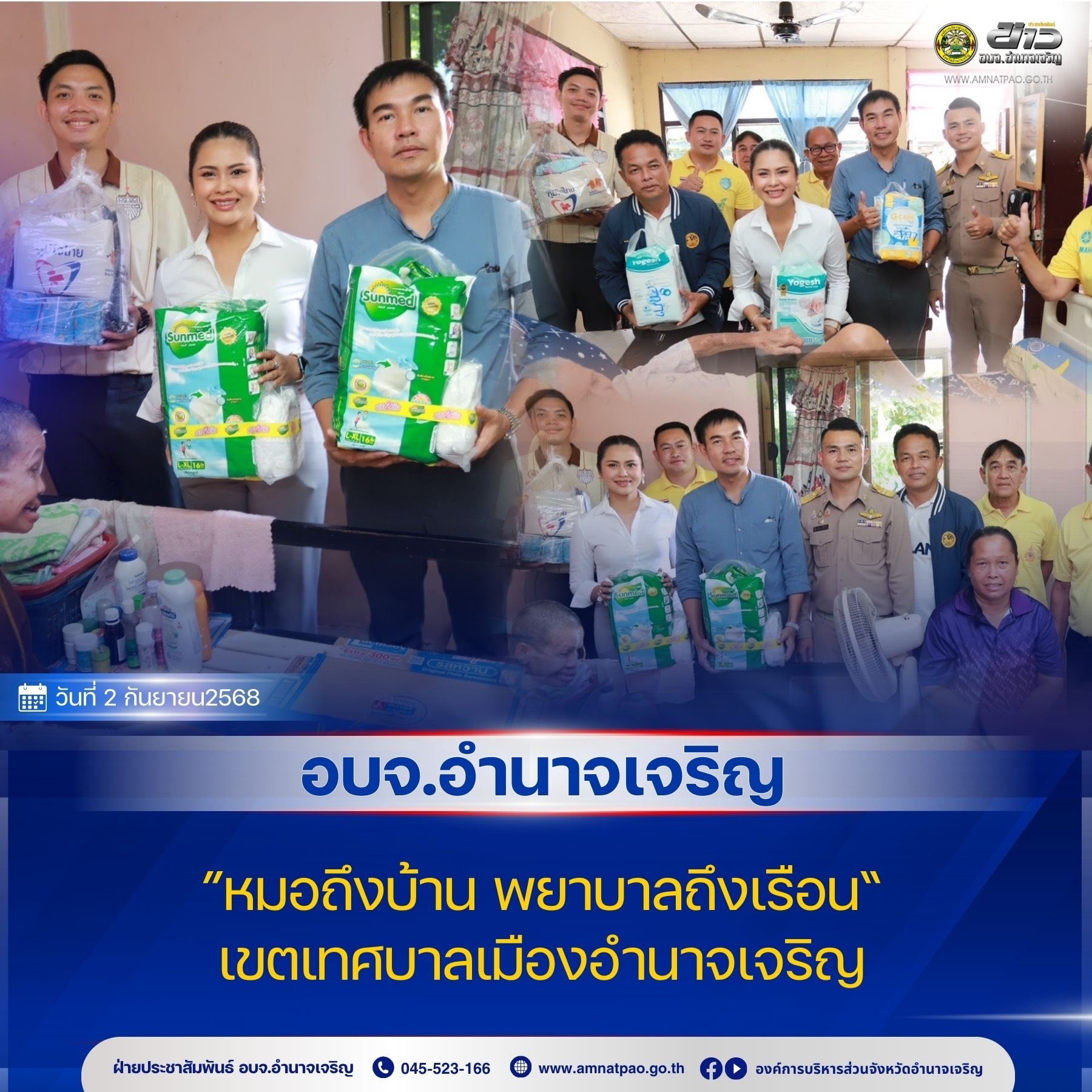 1 กันยายน 2568 อบจ.อำนาจเจริญ ผนึกกำลังเทศบาลเมืองอำนาจเจริญ เดินหน้านโยบาย “หมอถึงบ้าน พยาบาลถึงเรือน” ดูแลคุณภาพชีวิตพี่น้องประชาชน