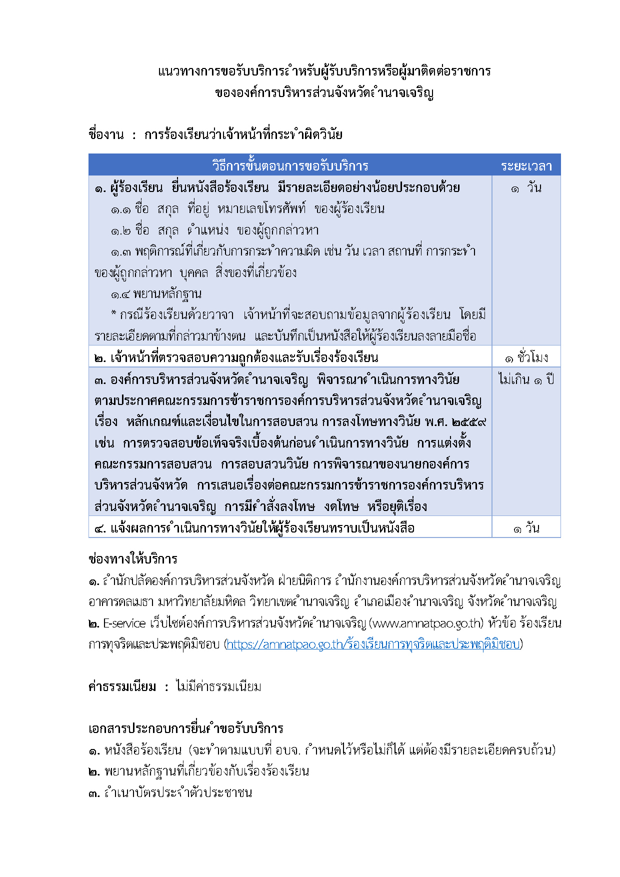 แนวทางการขอรับบริการสำหรับผู้มาติดต่อราชการ เรื่อง การร้องเรียนว่าเจ้าหน้าที่กระทำผิดวินัย