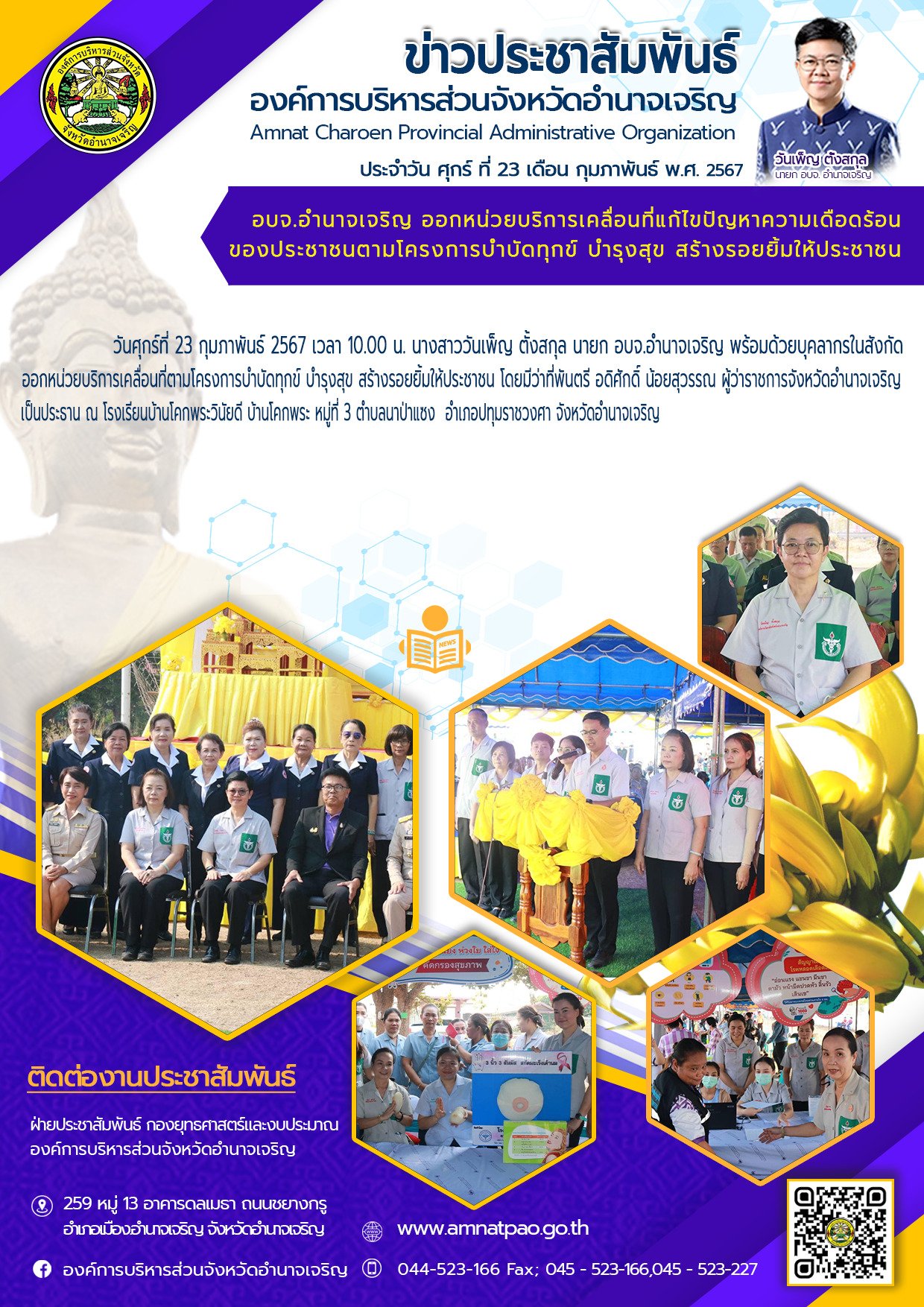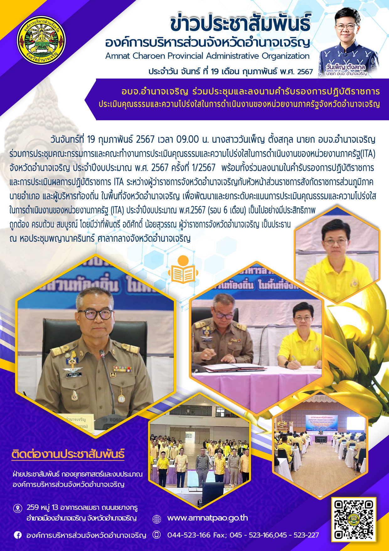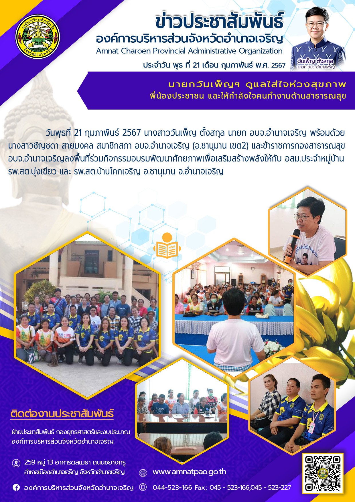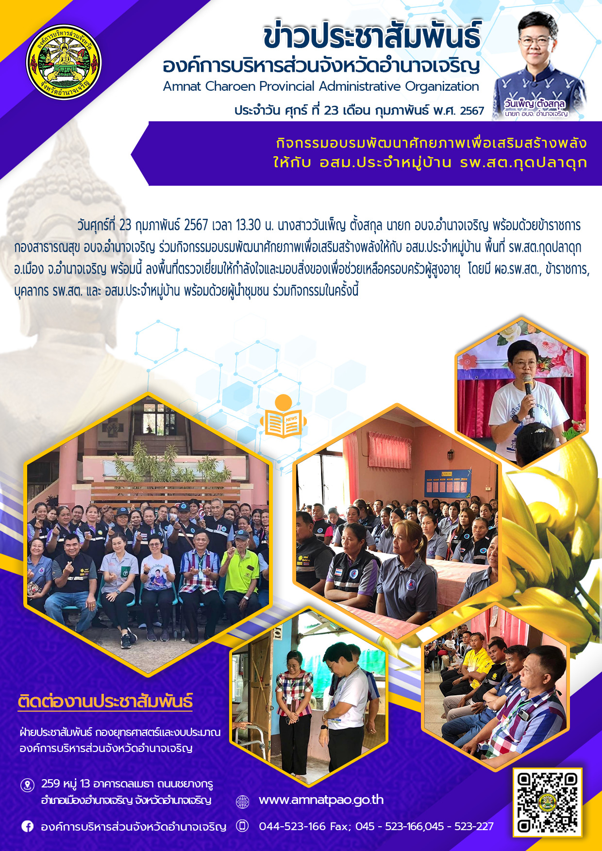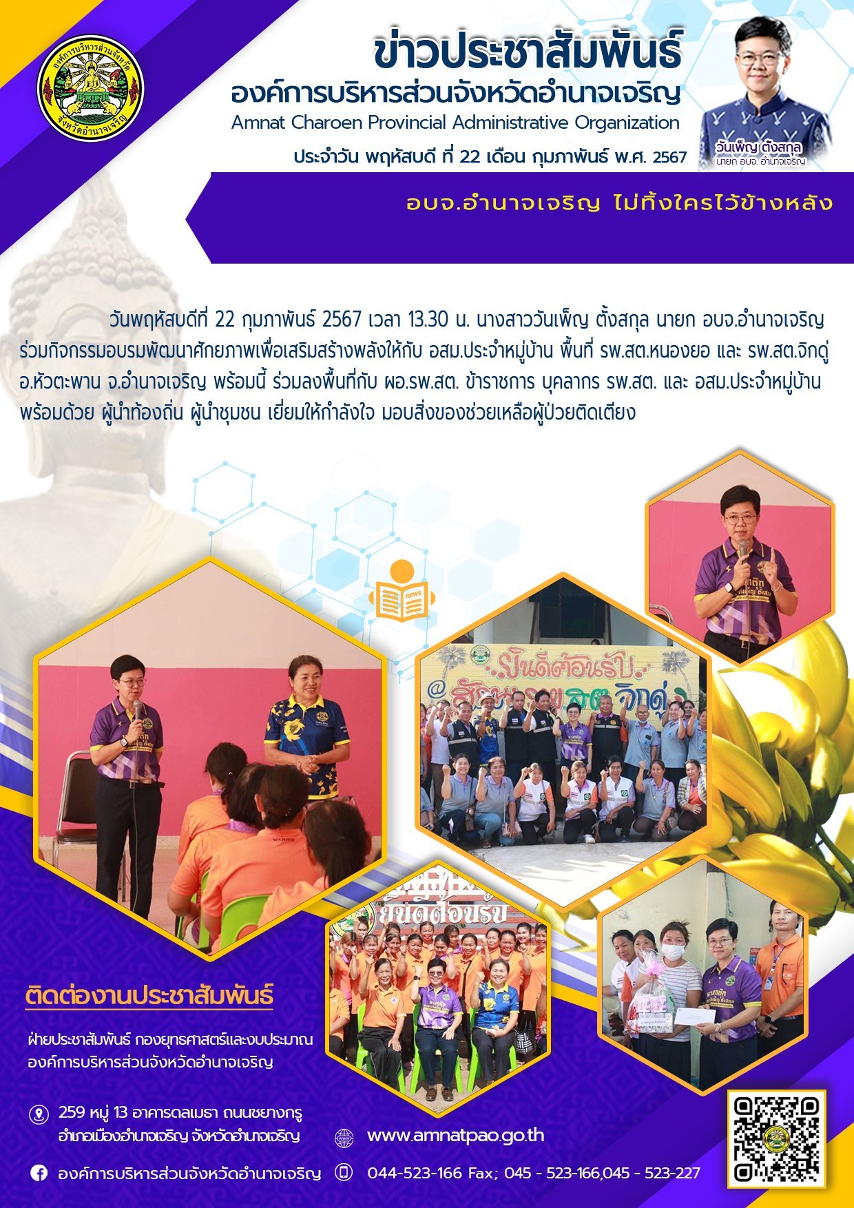 องค์การบริหารส่วนจังหวัดอำนาจเจริญ "ยึดมั่นธรรมาภิบาล บริการเพื่อประชาชน" ติดต่อโทร 045-523-166 ,