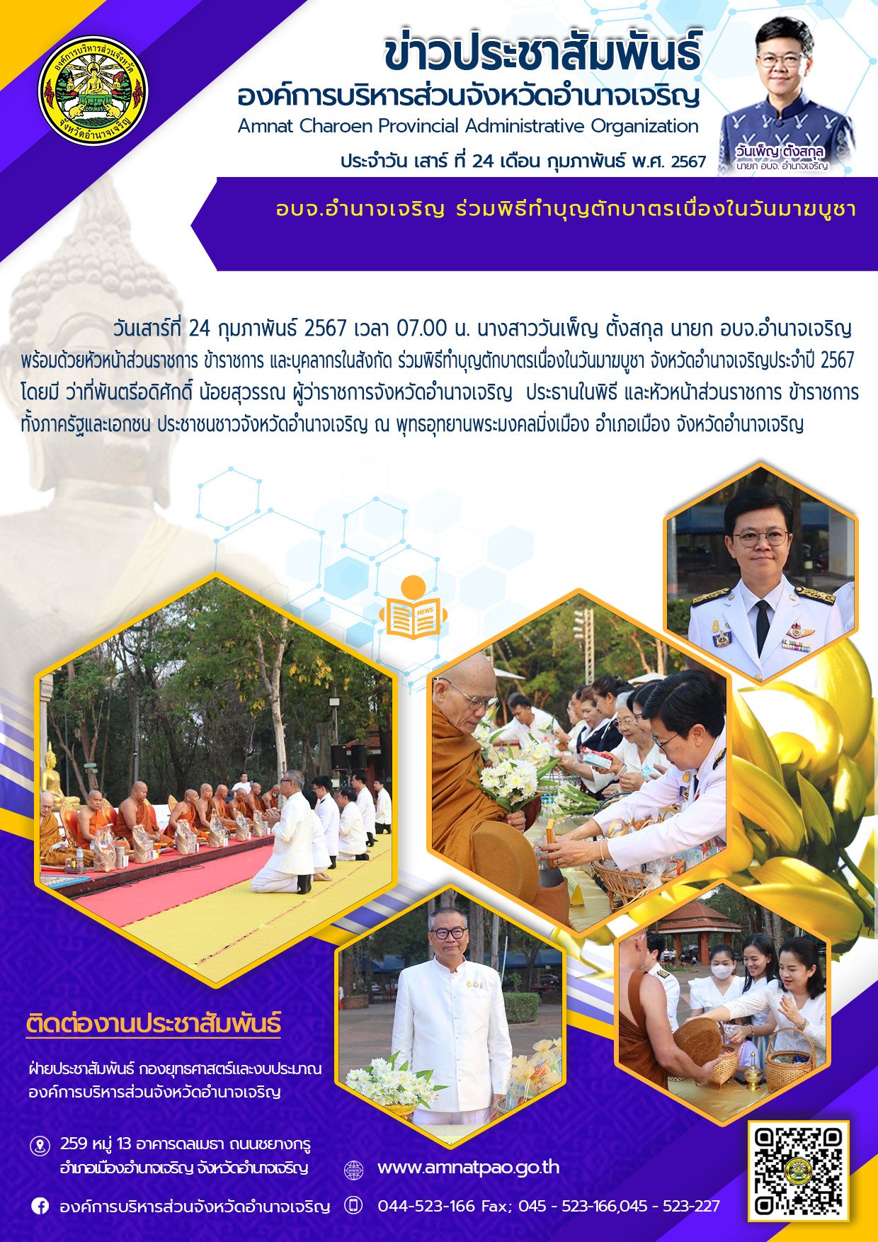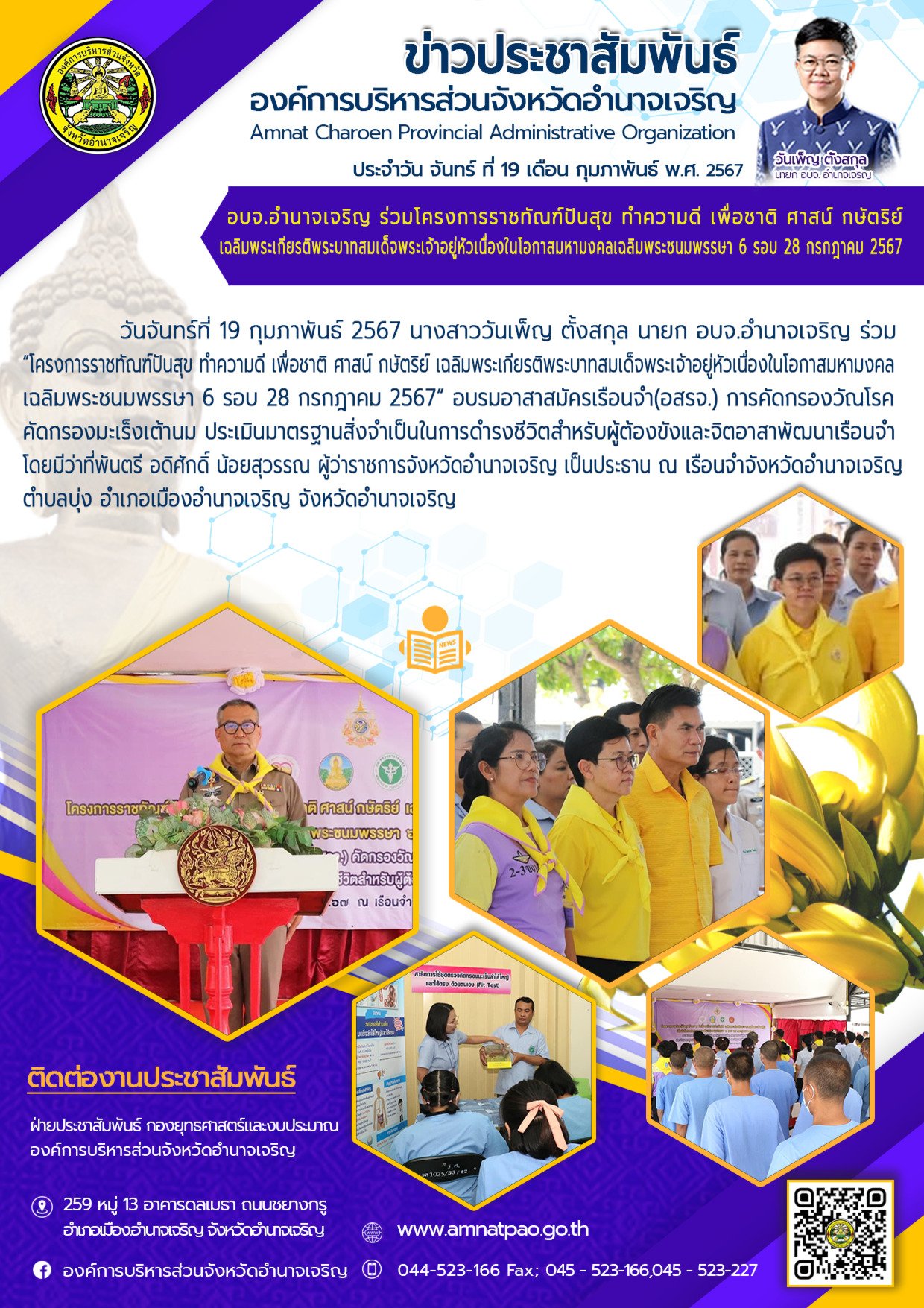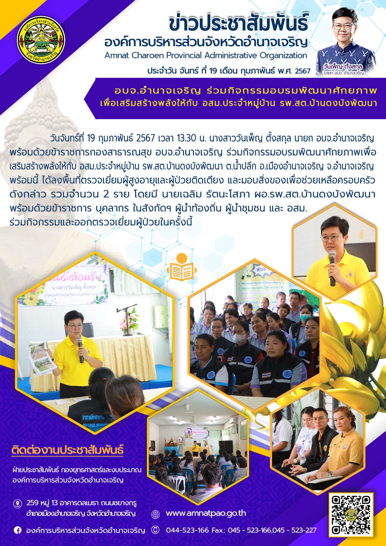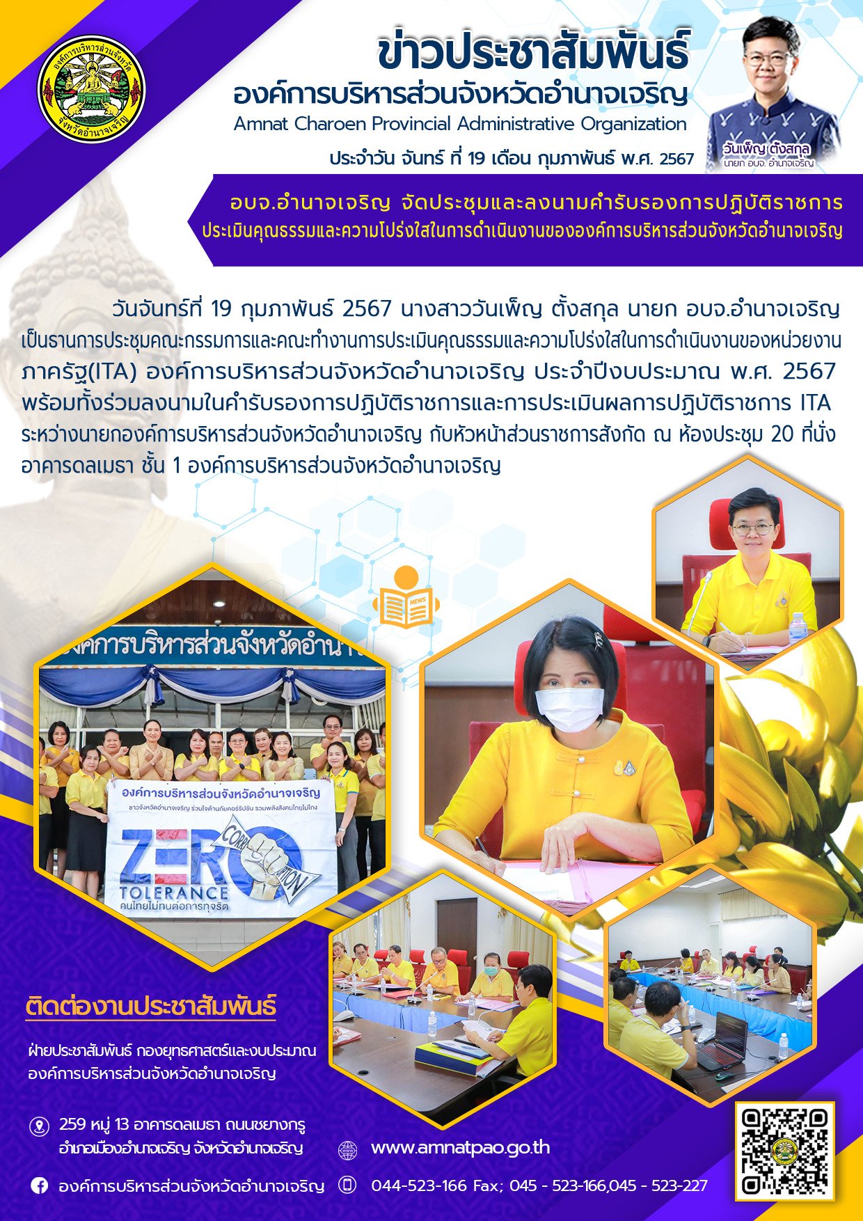 องค์การบริหารส่วนจังหวัดอำนาจเจริญ "ยึดมั่นธรรมาภิบาล บริการเพื่อประชาชน" ติดต่อโทร 045-523-166 ,