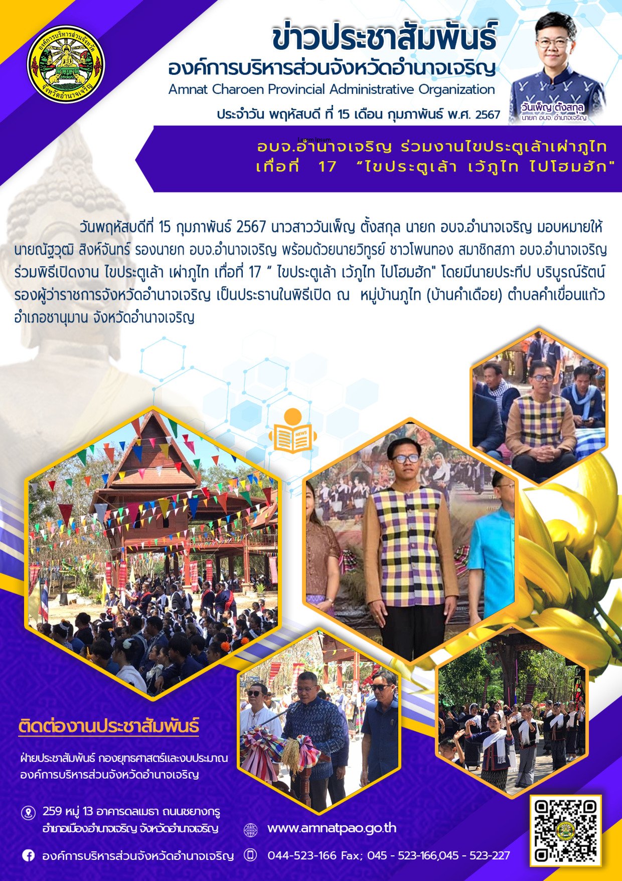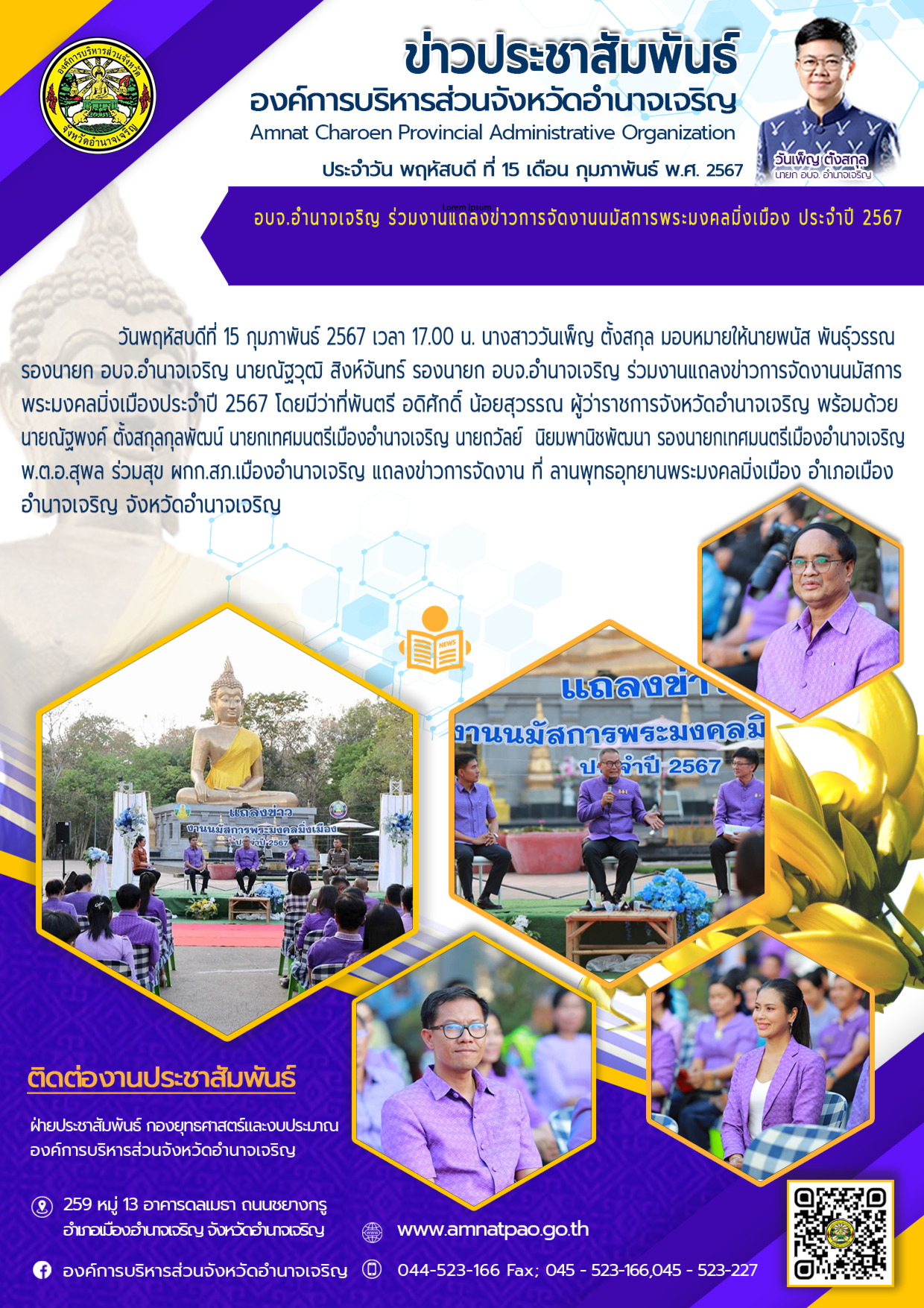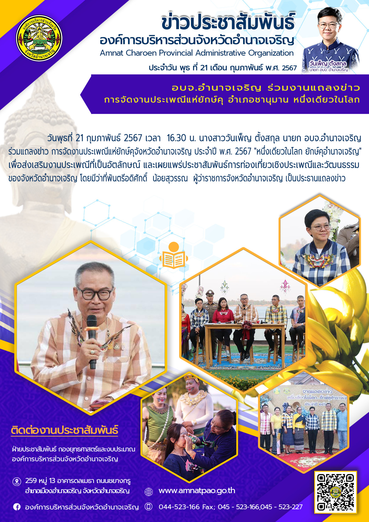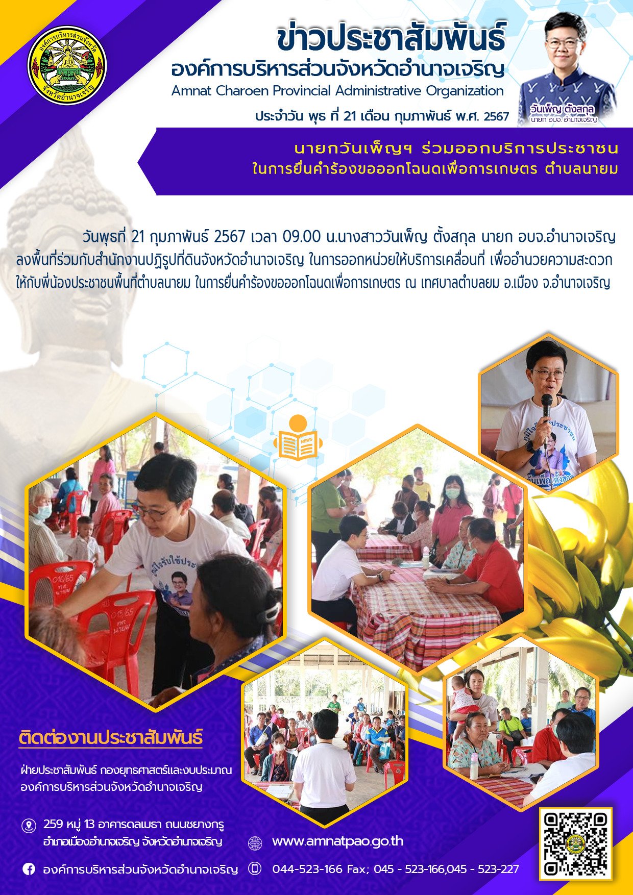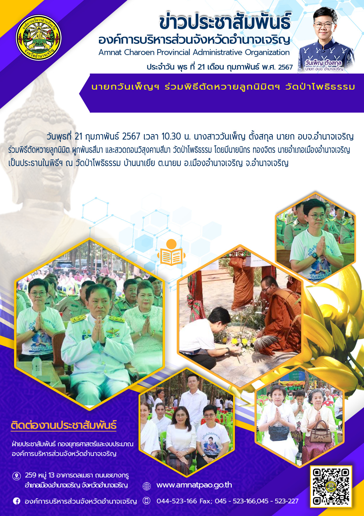 องค์การบริหารส่วนจังหวัดอำนาจเจริญ "ยึดมั่นธรรมาภิบาล บริการเพื่อประชาชน" ติดต่อโทร 045-523-166 ,