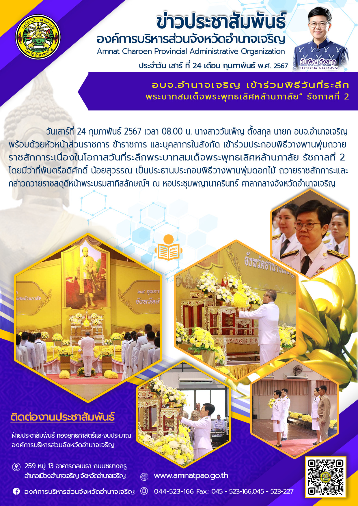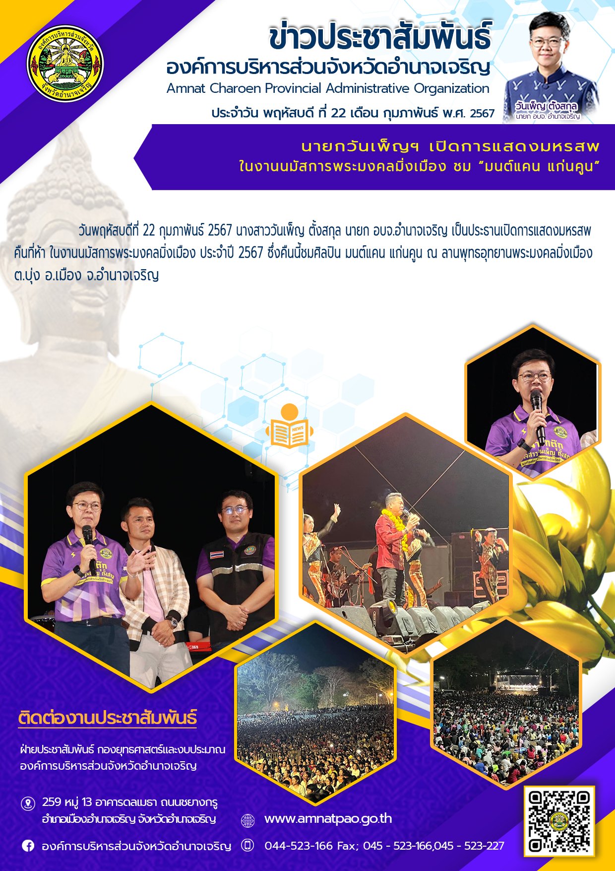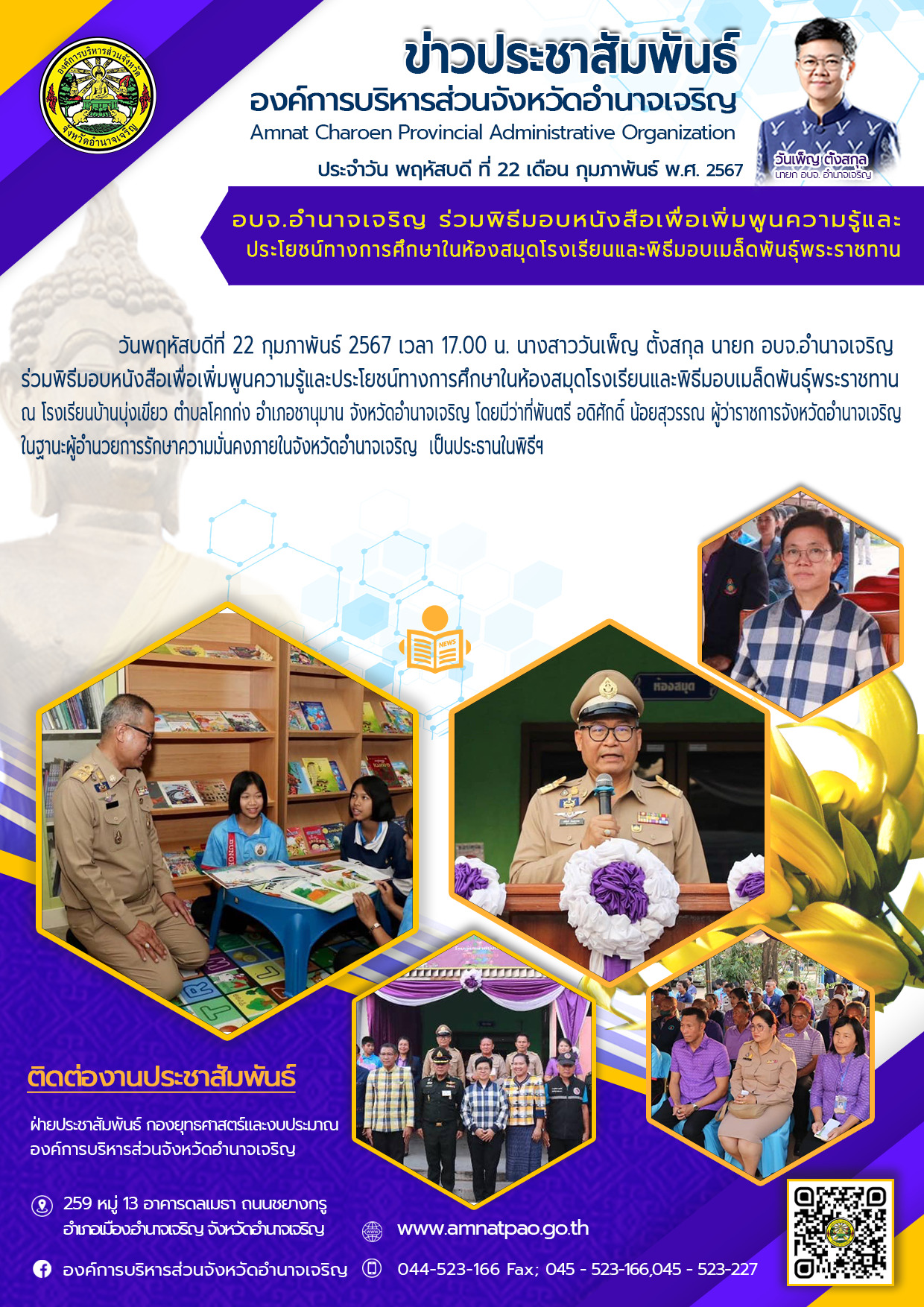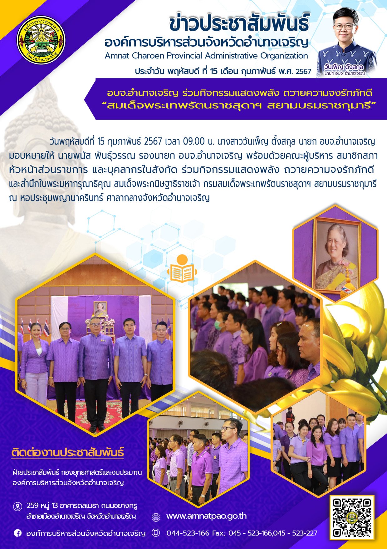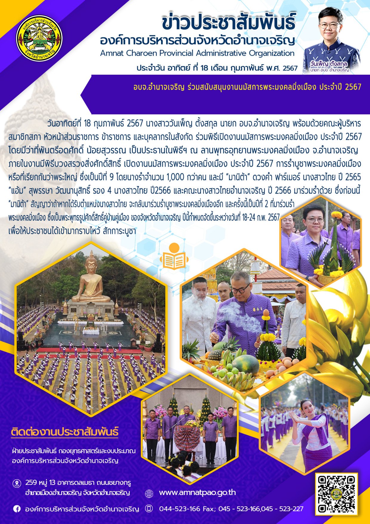องค์การบริหารส่วนจังหวัดอำนาจเจริญ "ยึดมั่นธรรมาภิบาล บริการเพื่อประชาชน" ติดต่อโทร 045-523-166 ,