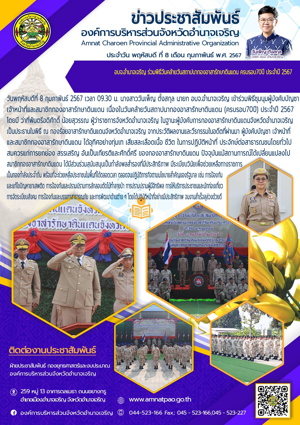 องค์การบริหารส่วนจังหวัดอำนาจเจริญ "ยึดมั่นธรรมาภิบาล บริการเพื่อประชาชน" ติดต่อโทร 045-523-166 ,